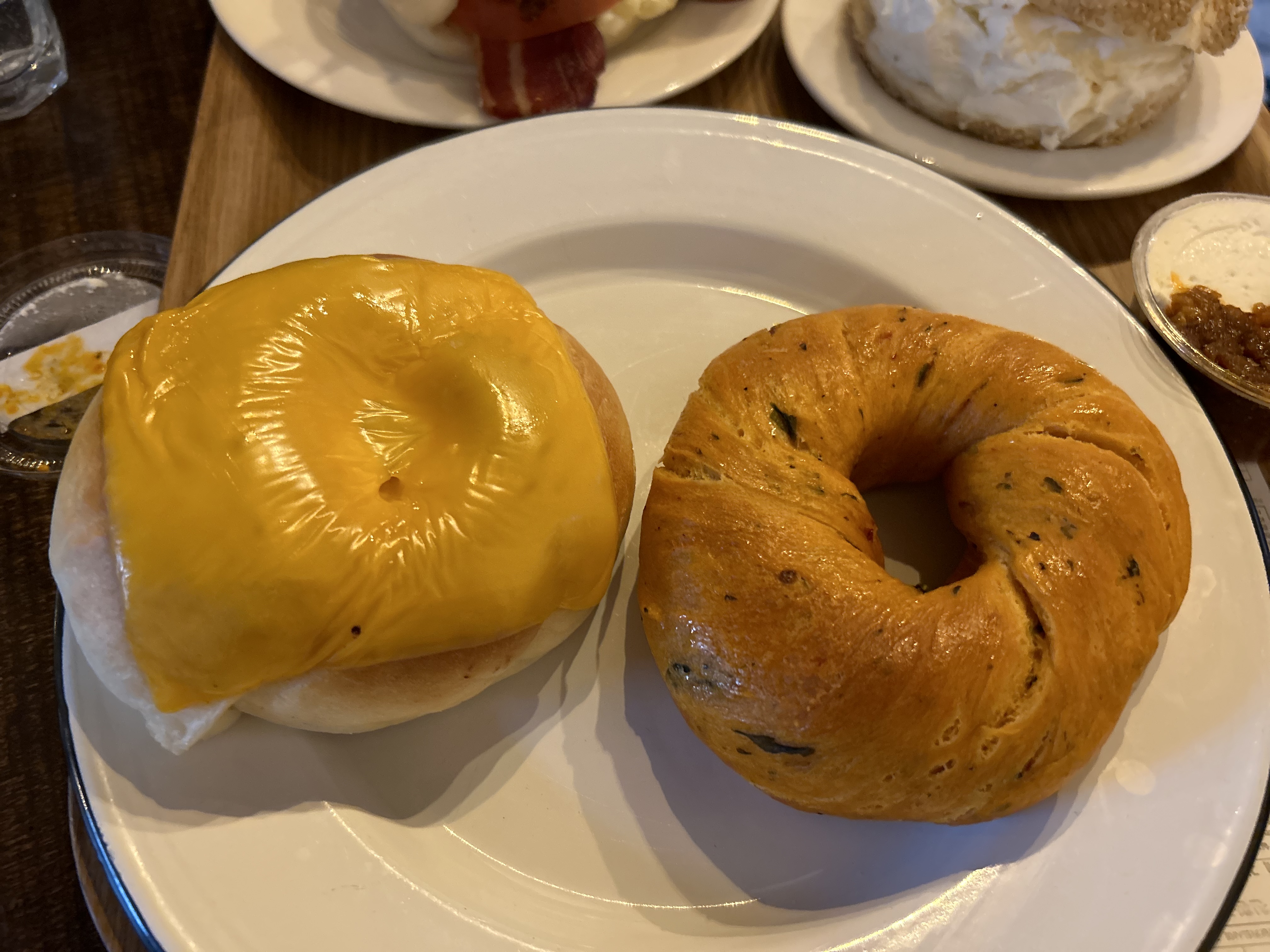 포테이트 치즈 베이글, 유명한 만큼의 순수한 맛 감자 + 치즈 조합에 식빵의 안쪽 하얀 부분만으로 만든 빵 느낌이 부들부들 좋았다.